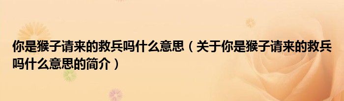 大家好,你是猴子請來的救兵嗎什么意思,關于你是猴子請來的救兵嗎什么意思的簡介很多人還不知道,現(xiàn)在讓我們一起來看看吧!