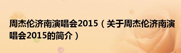 本文關于周杰倫濟南演唱會2015的簡介就講解完畢,希望對大家有所幫助。