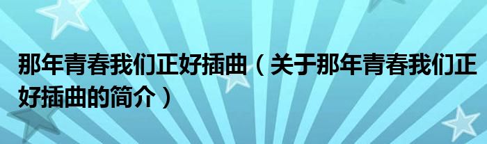 本文關于那年青春我們正好插曲的簡介就講解完畢,希望對大家有所幫助。