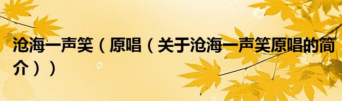 本文關于滄海一聲笑 原唱的簡介就講解完畢,希望對大家有所幫助。