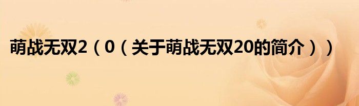 本文關于萌戰無雙2 0的簡介就講解完畢,希望對大家有所幫助。