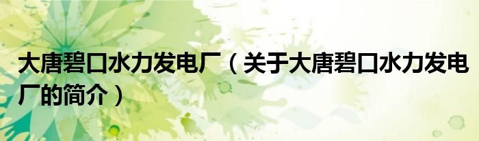 本文關于大唐碧口水力發電廠的簡介就講解完畢,希望對大家有所幫助。