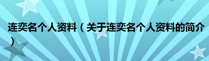 本文關(guān)于連奕名個(gè)人資料的簡(jiǎn)介就講解完畢,希望對(duì)大家有所幫助。