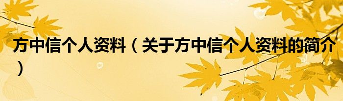 本文關于方中信個人資料的簡介就講解完畢,希望對大家有所幫助。