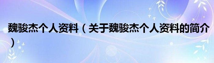 大家好,魏駿杰個人資料,關于魏駿杰個人資料的簡介很多人還不知道,現(xiàn)在讓我們一起來看看吧!
