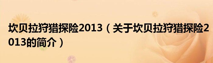 本文關于坎貝拉狩獵探險2013的簡介就講解完畢,希望對大家有所幫助。