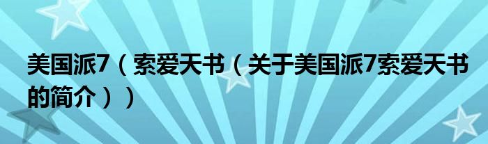 本文關(guān)于美國派7 索愛天書的簡介就講解完畢,希望對大家有所幫助。