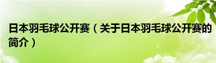 本文關于日本羽毛球公開賽的簡介就講解完畢,希望對大家有所幫助。