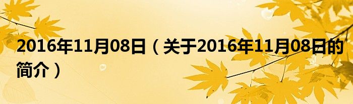 大家好,2016年11月08日,關(guān)于2016年11月08日的簡介很多人還不知道,現(xiàn)在讓我們一起來看看吧!