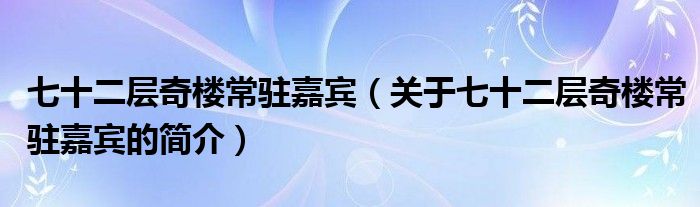 本文關于七十二層奇樓常駐嘉賓的簡介就講解完畢,希望對大家有所幫助。