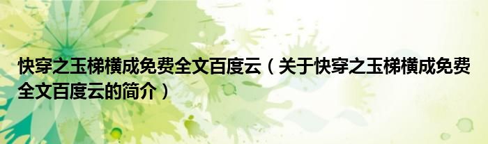 大家好,快穿之玉梯橫成免費全文百度云,關于快穿之玉梯橫成免費全文百度云的簡介很多人還不知道,現在讓我們一起來看看吧!