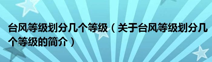 本文關(guān)于臺(tái)風(fēng)等級(jí)劃分幾個(gè)等級(jí)的簡(jiǎn)介就講解完畢,希望對(duì)大家有所幫助。