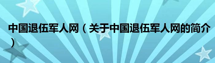 本文關于中國退伍軍人網的簡介就講解完畢,希望對大家有所幫助。