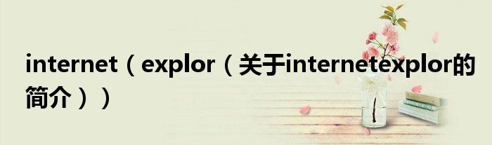 大家好,internet explor,關于internet explor的簡介很多人還不知道,現在讓我們一起來看看吧!