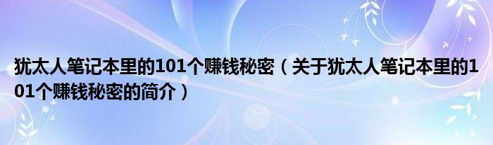 本文關(guān)于猶太人筆記本里的101個(gè)賺錢秘密的簡(jiǎn)介就講解完畢,希望對(duì)大家有所幫助。