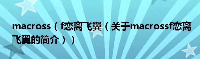 本文關于macross f 戀離飛翼的簡介就講解完畢,希望對大家有所幫助。