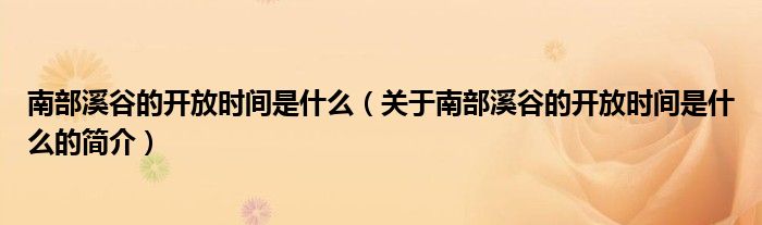 本文關于南部溪谷的開放時間是什么的簡介就講解完畢,希望對大家有所幫助。