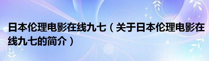 本文關于日本倫理電影在線九七的簡介就講解完畢,希望對大家有所幫助。