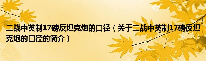 大家好,二戰(zhàn)中英制17磅反坦克炮的口徑,關(guān)于二戰(zhàn)中英制17磅反坦克炮的口徑的簡介很多人還不知道,現(xiàn)在讓我們一起來看看吧!