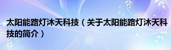 本文關于太陽能路燈沐天科技的簡介就講解完畢,希望對大家有所幫助。