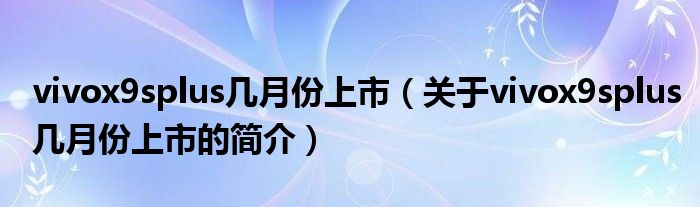 大家好,vivox9splus幾月份上市,關于vivox9splus幾月份上市的簡介很多人還不知道,現在讓我們一起來看看吧!