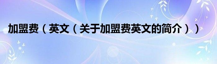 本文關于加盟費 英文的簡介就講解完畢,希望對大家有所幫助。