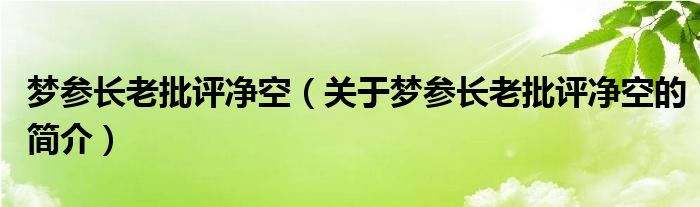 本文關于夢參長老批評凈空的簡介就講解完畢,希望對大家有所幫助。