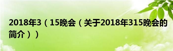 大家好,2018年3 15晚會,關于2018年3 15晚會的簡介很多人還不知道,現在讓我們一起來看看吧!