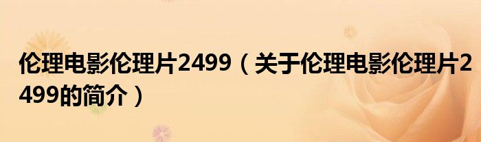 本文關于倫理電影倫理片2499的簡介就講解完畢,希望對大家有所幫助。
