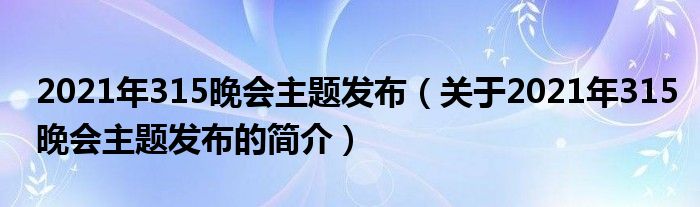 本文關于2021年315晚會主題發布的簡介就講解完畢,希望對大家有所幫助。