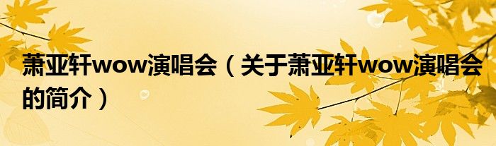 本文關于蕭亞軒wow演唱會的簡介就講解完畢,希望對大家有所幫助。