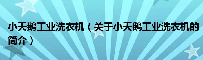 本文關于小天鵝工業洗衣機的簡介就講解完畢,希望對大家有所幫助。