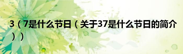 本文關于3 7是什么節日的簡介就講解完畢,希望對大家有所幫助。