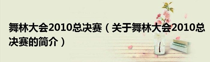 本文關(guān)于舞林大會(huì)2010總決賽的簡(jiǎn)介就講解完畢,希望對(duì)大家有所幫助。