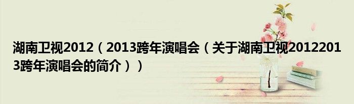 本文關于湖南衛視2012 2013跨年演唱會的簡介就講解完畢,希望對大家有所幫助。