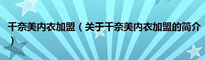 本文關于千奈美內衣加盟的簡介就講解完畢,希望對大家有所幫助。
