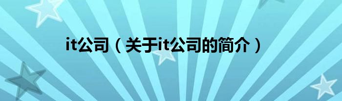 本文關于it公司的簡介就講解完畢,希望對大家有所幫助。