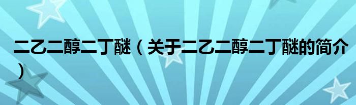 本文關于二乙二醇二丁醚的簡介就講解完畢,希望對大家有所幫助。