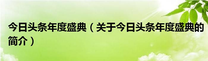 大家好,今日頭條年度盛典,關于今日頭條年度盛典的簡介很多人還不知道,現在讓我們一起來看看吧!