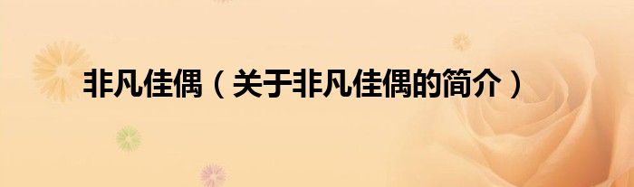 大家好,非凡佳偶,關(guān)于非凡佳偶的簡(jiǎn)介很多人還不知道,現(xiàn)在讓我們一起來(lái)看看吧!