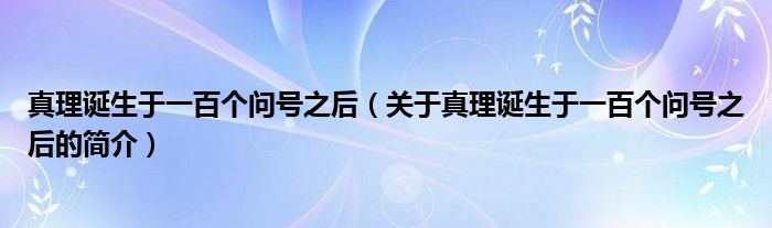 本文關于真理誕生于一百個問號之后的簡介就講解完畢,希望對大家有所幫助。