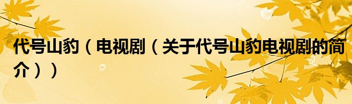 本文關于代號山豹 電視劇的簡介就講解完畢,希望對大家有所幫助。
