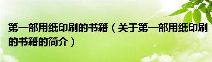 本文關于第一部用紙印刷的書籍的簡介就講解完畢,希望對大家有所幫助。
