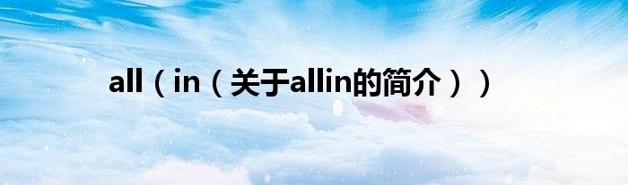 本文關于all in的簡介就講解完畢,希望對大家有所幫助。