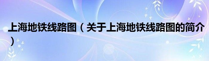 本文關于上海地鐵線路圖的簡介就講解完畢,希望對大家有所幫助。