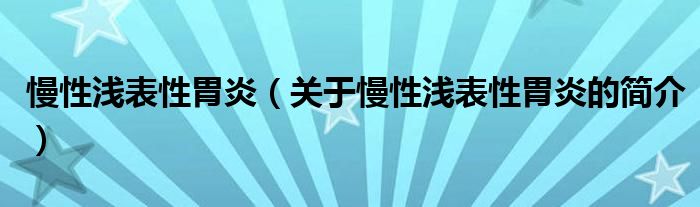 本文關(guān)于慢性淺表性胃炎的簡介就講解完畢,希望對大家有所幫助。
