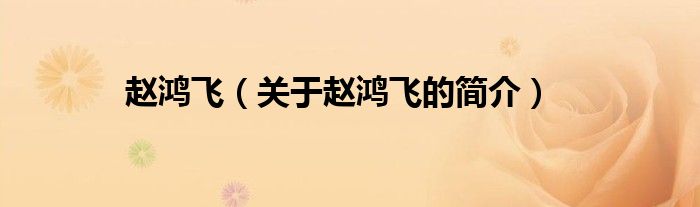 大家好,趙鴻飛,關于趙鴻飛的簡介很多人還不知道,現在讓我們一起來看看吧!
