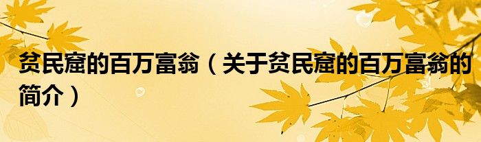 本文關于貧民窟的百萬富翁的簡介就講解完畢,希望對大家有所幫助。