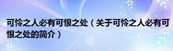 大家好,可憐之人必有可恨之處,關于可憐之人必有可恨之處的簡介很多人還不知道,現在讓我們一起來看看吧!