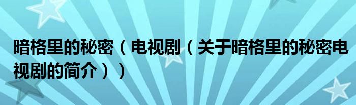 本文關于暗格里的秘密 電視劇的簡介就講解完畢,希望對大家有所幫助。